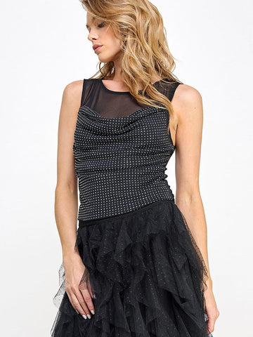A play of shadow and shape — luminous materials highlight your silhouette with natural poise.